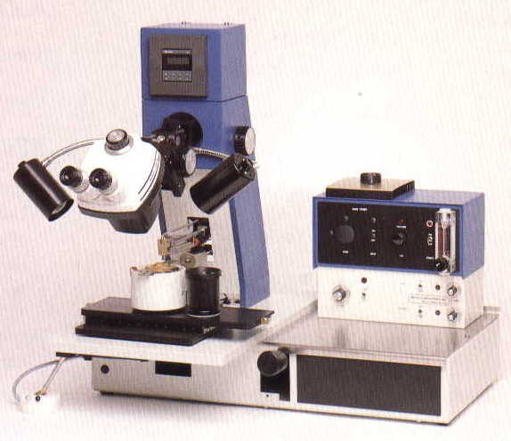 . The machine comes with a 2 position slide table for die presentation and heated work holder. The MEI 709 uses a unique hot gas head that allows the user to heat the package to a temperature below the wetting temperature of the solder and use the hot gas to bring the localized heat to only the die area to wet the solder or perform.